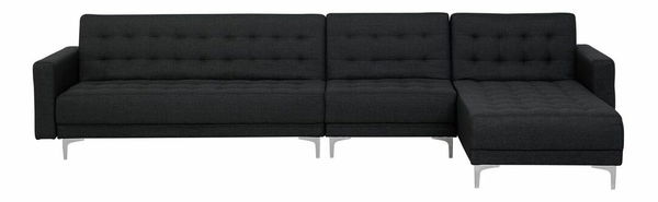 Táto veľká rohová pohovka je ideálnym kusom nábytku do vašej obývacej izby. Pozostáva z trojmiestnej a jednomiestnej pohovky a ležadla. Vďaka nastaviteľnému operadlu ju možno jednoducho rozložiť na pohodlnú posteľ pre dve osoby. Ležadlo môže byť umiestnené na pravej alebo ľavej strane. Táto pohovka je celá čalúnená vysokokvalitnou a štýlovou grafitovosivou látkou s elegantným prešívaním a ponúka funkčnosť i nadčasový štýl. Je dobrou voľbou do moderných, ale aj tradične zariadených interiérov. Stabilitu pohovky zaručujú kovové nohy.