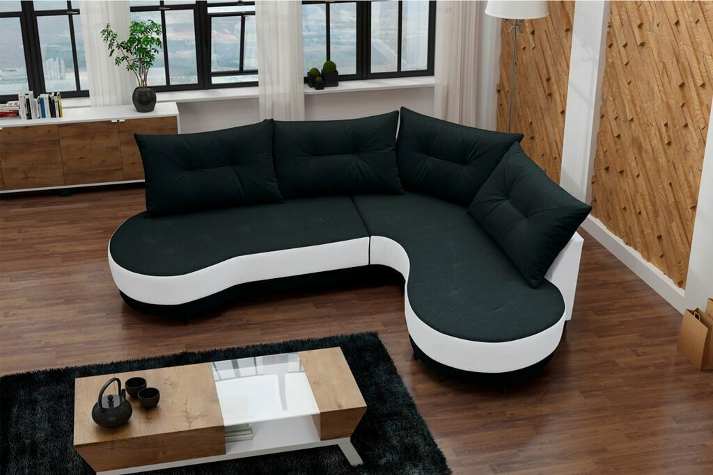 ZobraziťRohová sedačka Adam (čierna + biela) je elegantná sedačka s obľúbenými feng-shui tvarmi a jemnými aj tmavými farbami. Sedačka nie je s úložným priestorom a je vhodná pre obývačku, recepciu alebo kanceláriu. Sedačka je dostupná v ľavom aj pravom prevedení a má výšku 94 cm a hĺbku 227 cm. Tkanina Inari 100 + Soft 17 je odolná voči oderu a roztrhnutiu s vysokou odolnosťou 100 000 cyklov podľa stupnice Martindale. Látka Soft je dokonalá imitácia skutočnej kože a je odolná voči škvrnám a svetlu. Konštrukcia sedačky je z drevotriesky a lamino dosky s penou T-30 ako výplňou a plastovými nožičkami v čiernej farbe. Sedačka sa zmestí do výťahu a do dverí so šírkou 80 cm.