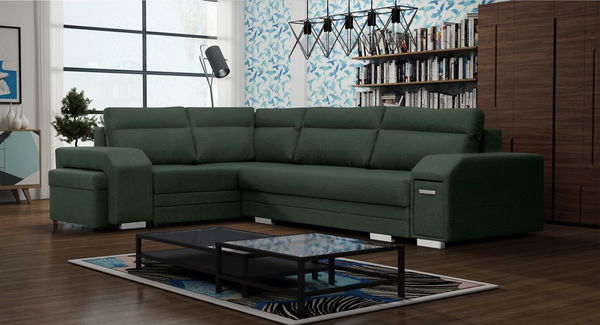 ZobraziťRohová sedačka Alfredo v zelenej farbe má v jednej opierke minibar a v druhej otoman. Je rozkladacia a má dva úložné priestory. Tkanina Malmo 37 je odolná voči žmolkovaniu a slnečnému žiareniu, a je príjemná na dotyk. Konštrukcia je z drevotriesky a lamino dosky s falistou pružinou a penou T-30. Nožičky sú plastové a chrómové. Plocha na spanie je 250 x 150 cm a rozkladací mechanizmus je automat. Sedačka má hĺbku sedu 56 cm a výšku sedu 42 cm. Má čalúnenie aj zozadu a rozmery balíkov sú 100x72x61 cm/ 60 kg a 178x78x64 cm/ 70 kg.