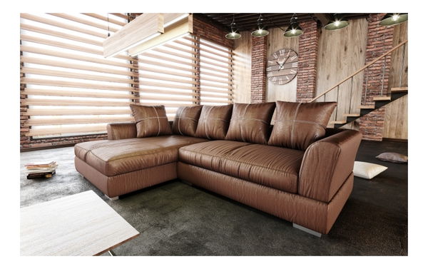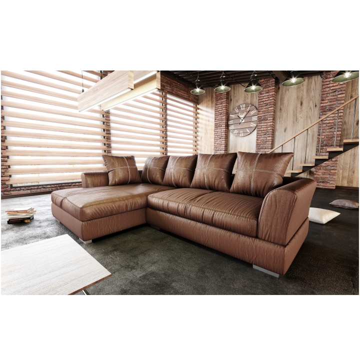 Sedačka Anona má jedinečný dizajn a poťah s efektom brúsenej kože. Čalúnenie je látkové, ale na pohľad pôsobí ako koža. Sedačka s vankúšmi je dostupná v ľavom aj pravom prevedení.