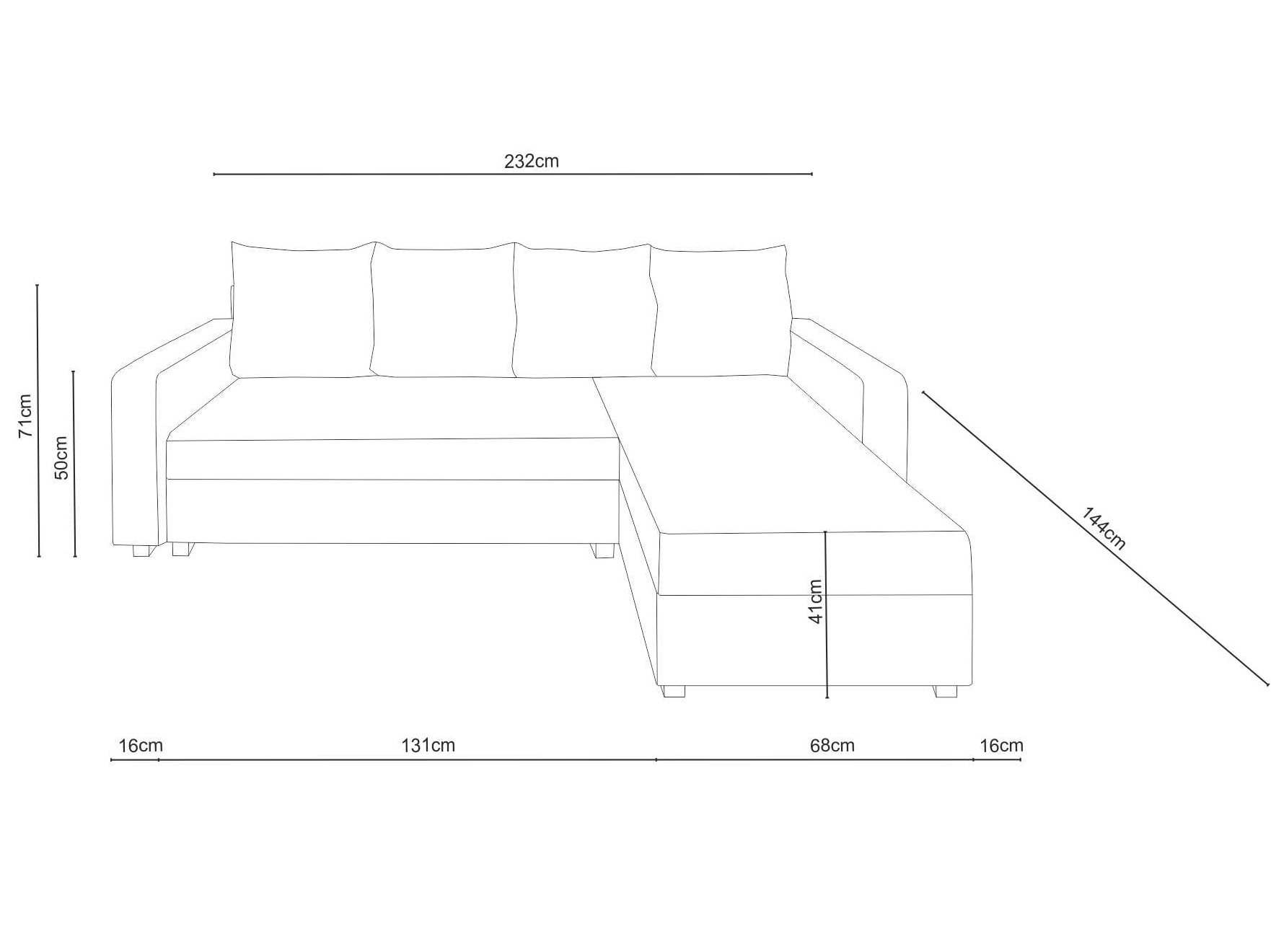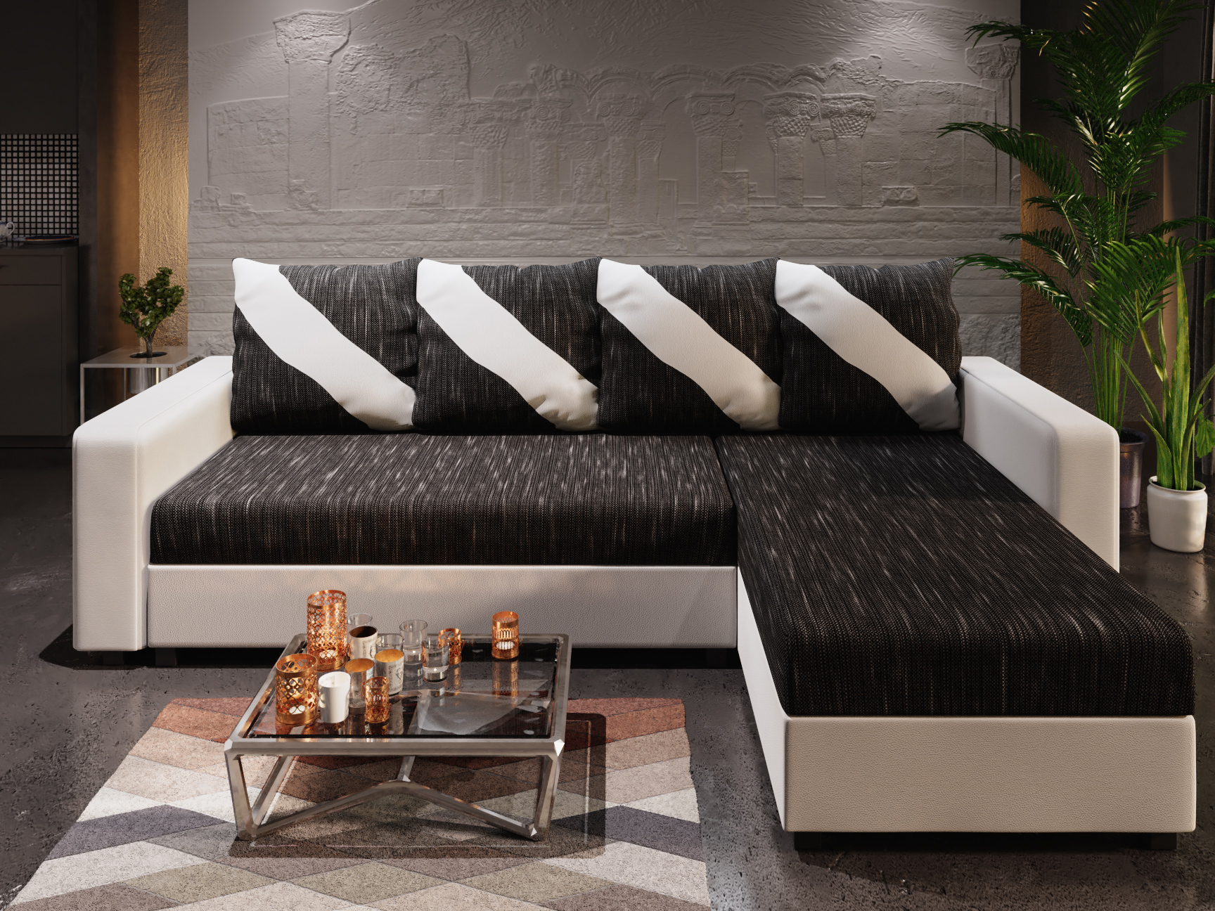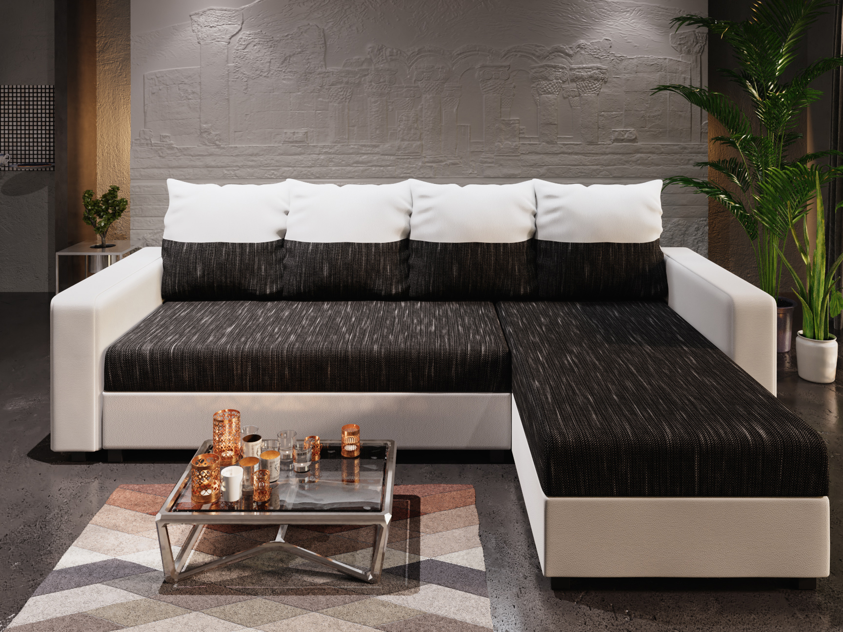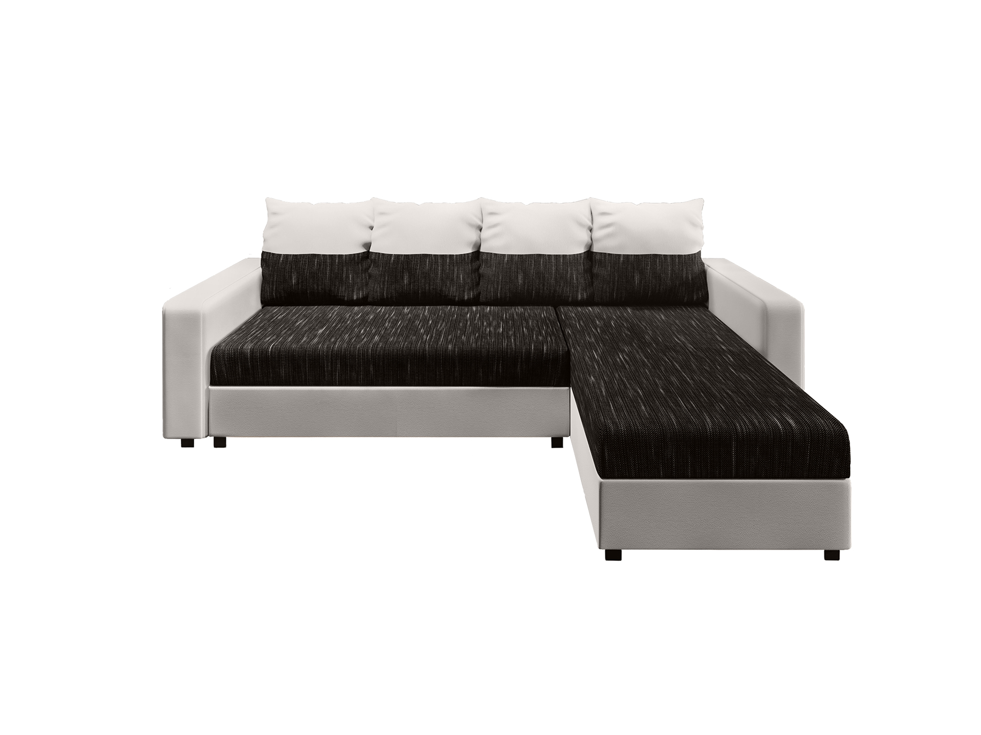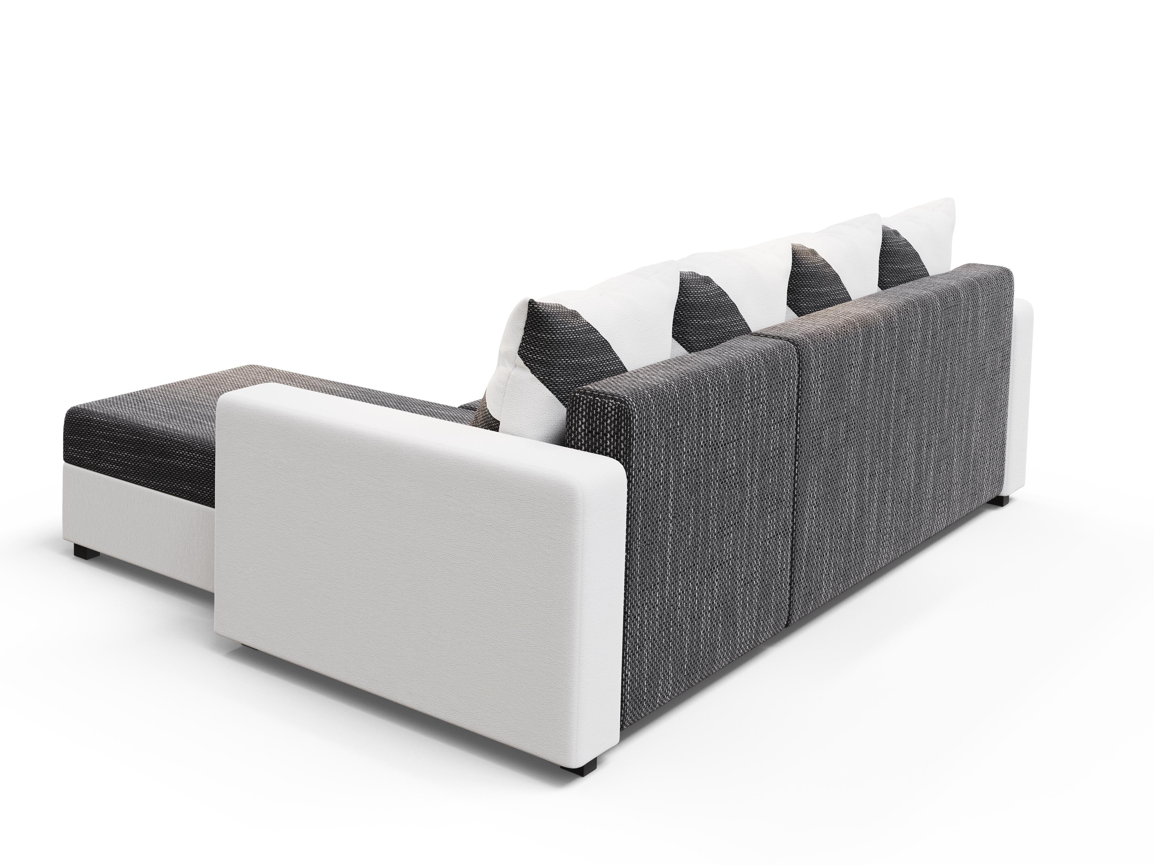 Rohová sedačka Ardait (melírovaná sivá + biela) je moderná a štýlová sedačka s unikátnym dizajnovým prvkom - štyrmi obojstrannými vankúšmi s rôznymi motívmi. Sedačka sa ľahko rozloží na plochu 200x132 cm a má aj úložný priestor na ukladanie vecí. Tkanina Kornet je husto tkaná látka so štruktúrou a melírovaným efektom, zatiaľ čo tkanina Dolaro napodobňuje prírodnú kožu. Sedacia súprava disponuje falistou pružinou, PU penou T30 (8 mm) a automatickým rozkladacím mechanizmom. V cene sú zahrnuté štyri vankúše.