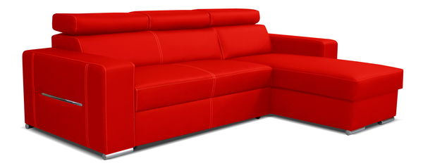 S touto rohovou sedačkou si určite skrášlite svoje obývacie izby. Sedačka má zaujímavý moderný dizajn s tvarovanými opierkami. Prostriedok sedačky a jej boky sú kontrastne prešité. Na boku sedačky sú ozdobné kovové časti. Sedačka je potiahnutá kvalitnou ekokožou. Ak potrebujete plochu na príležitostné prespanie, sedačka sa dá jednoducho rozložiť. Okrem tejto funkcie má sedačka aj praktický úložný priestor. Sedačka stojí na podlhovastých kovových nohách. Pravé prevedenie sedačky.