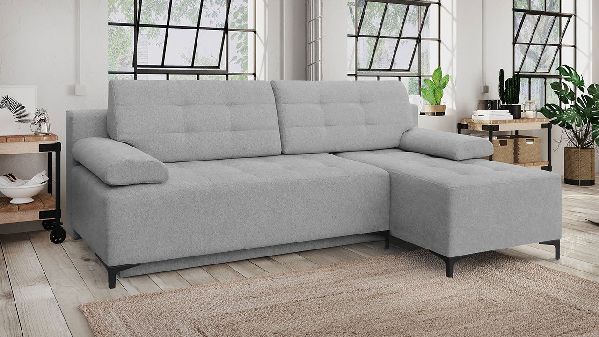 Moderná rohová pohovka Arkadia je veľmi elegantný a štýlový model. Tento efekt sa dosiahol vďaka detailom. Oko priťahuje pohyblivé operadlo vyrobené z vankúšov, ktoré boli zdobené prešívaním. Motív sa opakuje aj na sedadle. Pohyblivým prvkom rohu sú tiež podrúčky, ktoré po rozložení môžu pôsobiť ako vankúše. Tvar rohu je doplnený kovovými nohami, ktoré mu dodávajú ľahkosť. Moderná rohová pohovka Arkadia má podobu písmena L, má funkciu spánku pre dve osoby. Po rozvinutí má plochu 210 x 140 cm. Okrem toho má aj úložný priestor na posteľnú bielizeň.