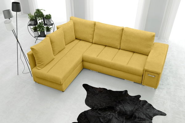 ZobraziťRohová sedačka Arlene (žltá) (L) s výškou 90 cm a hĺbkou 189 cm je ideálna pre každodenné spanie. Sedačka má praktický minibar skrytý v opierke a úložný priestor. Tkanina Rico 10 je charakterizovaná silnou štruktúrou a odolnosťou voči žmolkám, rozťahovaniu, roztrhnutiu a slnečnému žiareniu. Látku je možné prať. Konštrukcia sedačky je z dreva, drevotriesky a laminovanej dosky, s falistými pružinami a penou T-30. Nožičky sú plastové s chrómovou farbou. Sedačka má rozkladací mechanizmus automat, plochu na spanie 147x200 cm a výšku sedu 42 cm s hĺbkou sedu 53 cm. Sedačka má aj ďalšie vlastnosti ako napríklad čalúnenie zozadu, 2x úložný priestor a balík č. 1 má rozmery 195x85x90 cm/75 kg a balík č. 2 má rozmery 140x105x65 cm/65 kg.