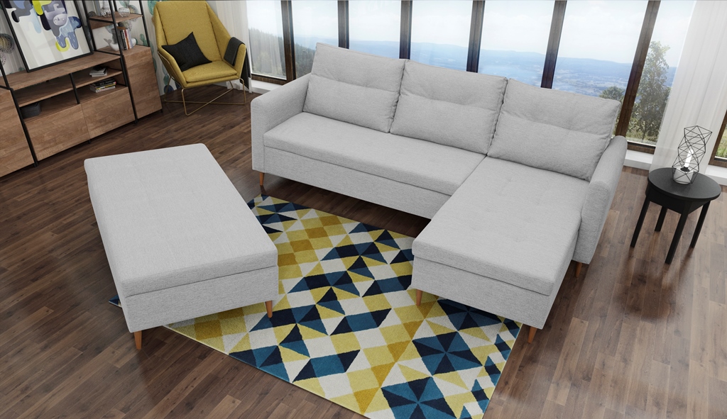 Výnimočná rohová sedačka Aurelio je vhodná do malých priestorov. V momente, keď prisuniete taburetku k sedačke, vytvoríte spací priestor na príležitostné návštevy. Dostupná v ľavom aj pravom prevedení. Vo vnútornej časti taburetky sa nachádza veľký úložný priestor. Taburetka v cene produktu.