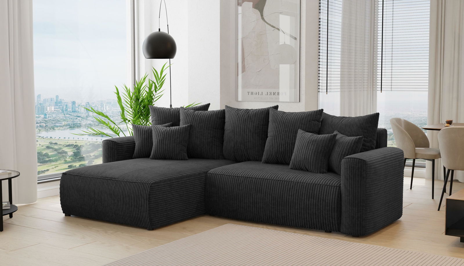 Rohová sedačka Baria (L) (čierna)