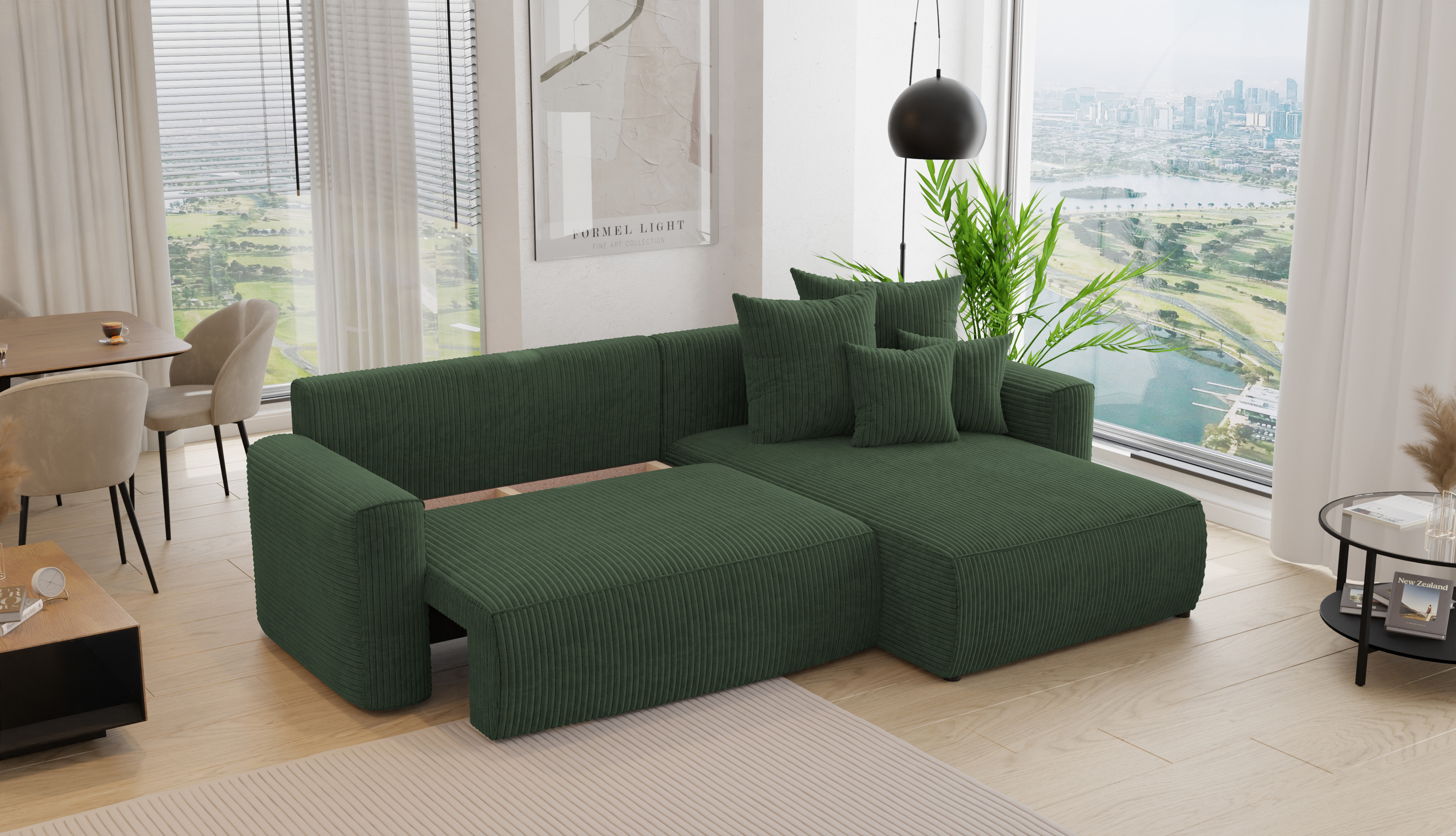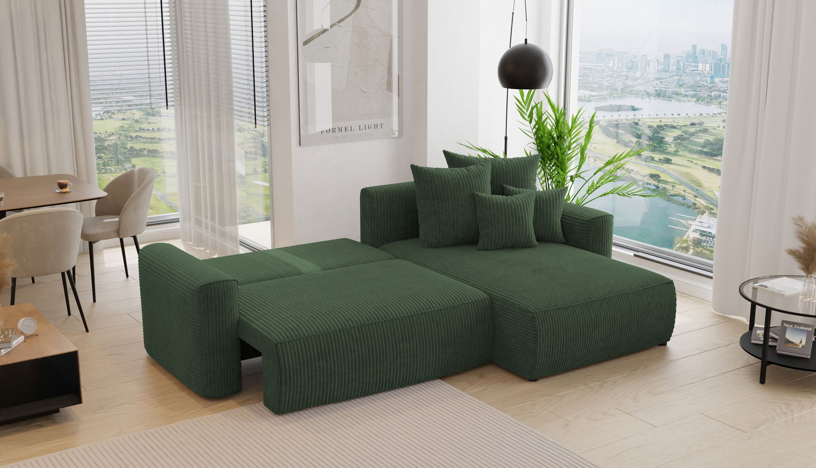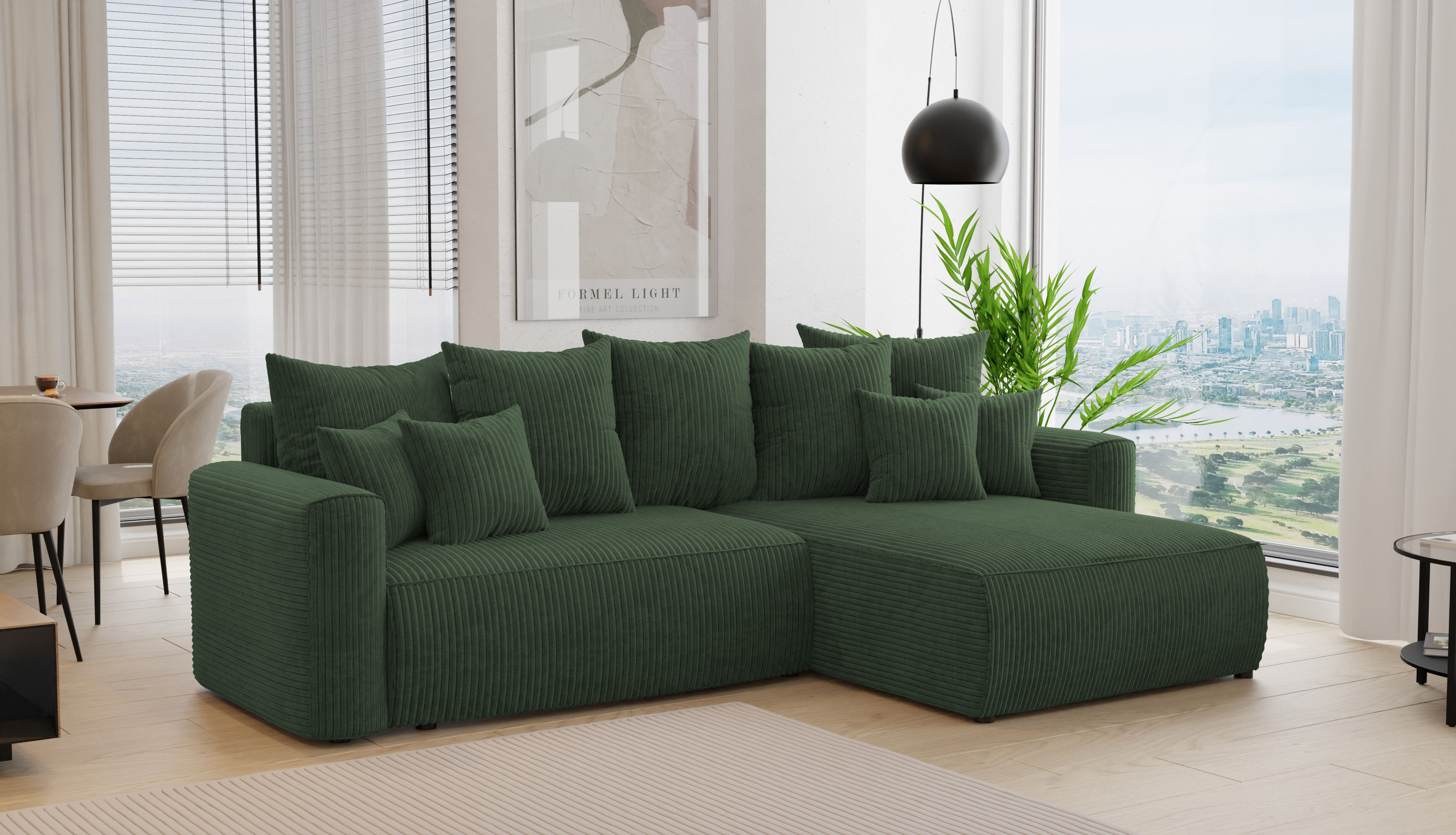 Rohová sedačka Baria (P) (tmavozelená)