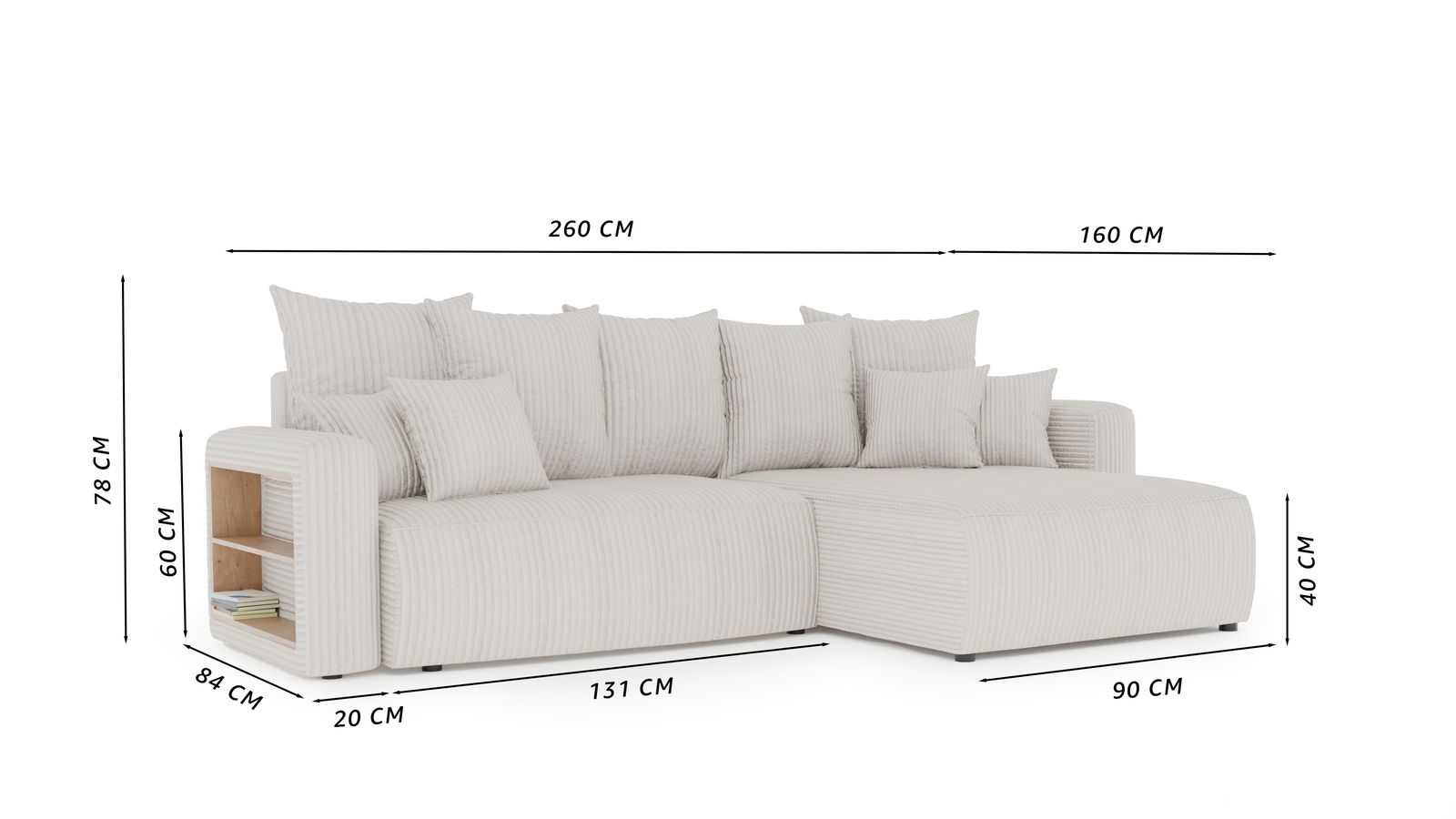 Rohovú pohovku nadmerne nezaťažujte, aby ste predišli jej poškodeniu. Rohová pohovka by mala byť umiestnená na rovnom povrchu a mala by sa vyhýbať nerovným alebo mokrým podlahám. Tento výrobok nie je určený na použitie v priestoroch s vysokou vlhkosťou alebo vystavených intenzívnym zdrojom tepla (napr. sporáky, radiátory). Nevystavujte rohovú pohovku priamemu slnečnému žiareniu, aby ste predišli vyblednutiu materiálu.