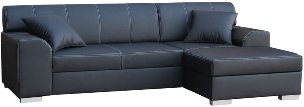 Krásna dizajnová rohová sedačka v prevedení pravý roh s výrazným zvislým prešívaním dodávajúcim dominantný ucelený tvar. Sedačka je rozkladacia a úložný priestor sa nachádza v rozkladacom rohu, po rozložení sa vytvorí rozmerná plocha na spanie o rozmere 268 cm dĺžka a 132 cm šírka. Sedák je vyrobený z pružiny, čím je zaručený komfort mäkkého sedenia a tvarová trvácnosť sedačky. Výška sedenia je 43 cm a hĺbka sedenia je 67 cm a sedačka stojí na sivých nožičkách. Prevedenie je koženka čierna - Madryt 1100