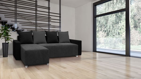 Rohová sedačka Briston s opierkami (čierna tmavosivá + vankúše)