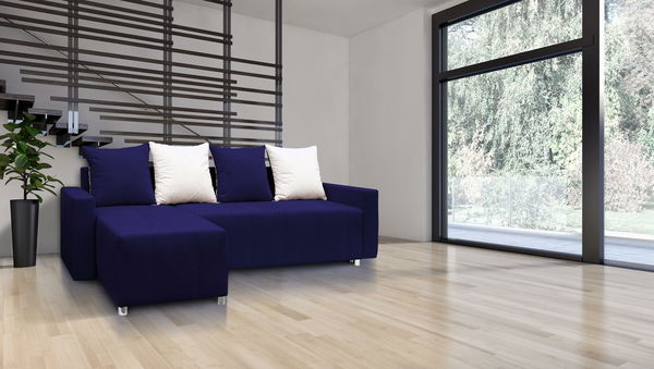Rohová sedačka Briston s opierkami (modrá + vankúše)
