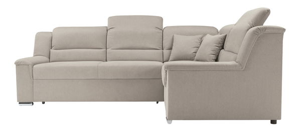 Rohová sedacia súprava s rozkladaním a úložným priestorom Mechanizmus rozkladania typu delfín - výsuvný vozík s gumovými kolieskami proti poškodeniu podlahy Nastaviteľné hlavové opierky pre pohodlné sedenie Zasúvací úložný priestor - komfortný prístup bez nutnosti rozkladania Vysoké operadlo - kvalitná podpora chrbta pri sedení Vlnité pružiny v sedacej aj opieracej časti pre pohodlné sedenie Nôžky plastové s chrómovou úpravou