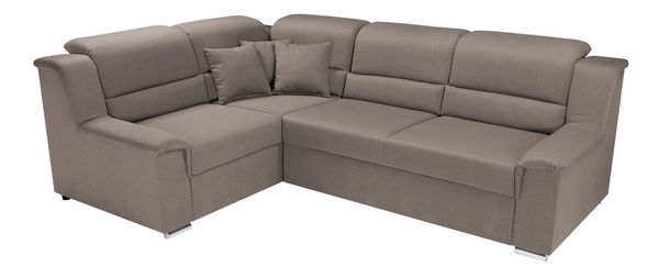 Rohová sedacia súprava s rozkladaním a úložným priestorom Mechanizmus rozkladania typu delfín - výsuvný vozík s gumovými kolieskami proti poškodeniu podlahy Nastaviteľné hlavové opierky pre pohodlné sedenie Zasúvací úložný priestor - komfortný prístup bez nutnosti rozkladania Vysoké operadlo - kvalitná podpora chrbta pri sedení Vlnité pružiny v sedacej aj opieracej časti pre pohodlné sedenie Nôžky plastové s chrómovou úpravou