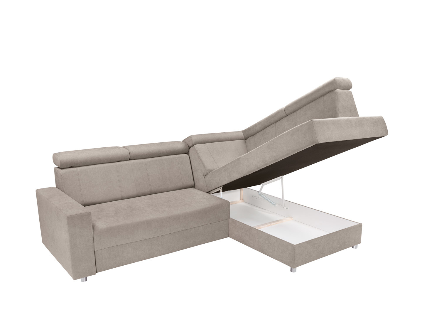 Moderná rohová sedačka, na ktorej si budete môcť po dlhých pracovných dňoch oddýchnuť alebo posedieť s priateľmi pri káve. Pokiaľ budete potrebovať prespať vy alebo vaša návšteva, stačí sedačku rozložiť. Má tiež veľmi praktický úložný priestor kam si môžete uložiť vašu posteľnú bielizeň. Pravé prevedenie sedačky.