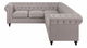 Táto rohová pohovka sa vyznačuje elegantnou siluetou so širokými zaoblenými ramenami, ktorá je charakteristická pre dizajn Chesterfield a hodí sa do každého moderného alebo tradične zariadeného interiéru. Ležadlo je umiestnené na pravej strane z pohľadu sediacej osoby. Nízke operadlo, hrubé čalúnené sedadlo a nohy z eukalyptového dreva ponúkajú ten najlepší komfort a stabilitu. Vďaka snímateľným poťahom na vankúšoch je čistenie prípadných škvŕn jednoduchšie. Kvalitné látkové čalúnenie v nadčasovej béžovej je zvýraznené klasickým prešívaním s gombíkmi. Táto anglická klasika sa ľahko udržiava a bude vyzerať úžasne v tradične zariadenom alebo modernom interiéri.