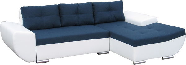 Čisté tvary, jednoduchosť, elegancia. To sú vlastnosti rohovej sedačky Combo vyrobenej v prevedení modrá farba s bielou a pravý roh. Sedačka je rozkladacia a s úložným priestorom, po rozložení je plocha na spanie dlhá 196 cm a široká 130 cm. Sedák je vyrobený z pružiny, čím je zaručený komfort mäkkého sedenia a tvarová trvácnosť sedačky. Výška sedenia je 41 cm, hĺbka sedenia je 58 cm a 80 cm . Sedačka stojí na kovových nožičkách v prevedení chrómová farba. Na výber sú aj ďalšie krásne kombinácie. Je čalúnená látkou v kombinácii s koženkou.