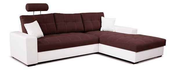 Zabezpečte si dostatok pohodlia s touto rohovou sedačkou moderného dizajnu. Sedacia časť a vankúše, ktoré slúžia ako operadlo, sú výrazne prešívané. Sedačka je potiahnutá látkou a koženkou. Pre väčšie pohodlie má sedačka výškovo nastaviteľnú opierku hlavy. Ak potrebujete plochu na spanie, získate ju jednoducho po rozložení sedačky. V priestrannom úložnom priestore uložíte posteľnú bielizeň a iné doplnky. Pravé prevedenie sedačky.
