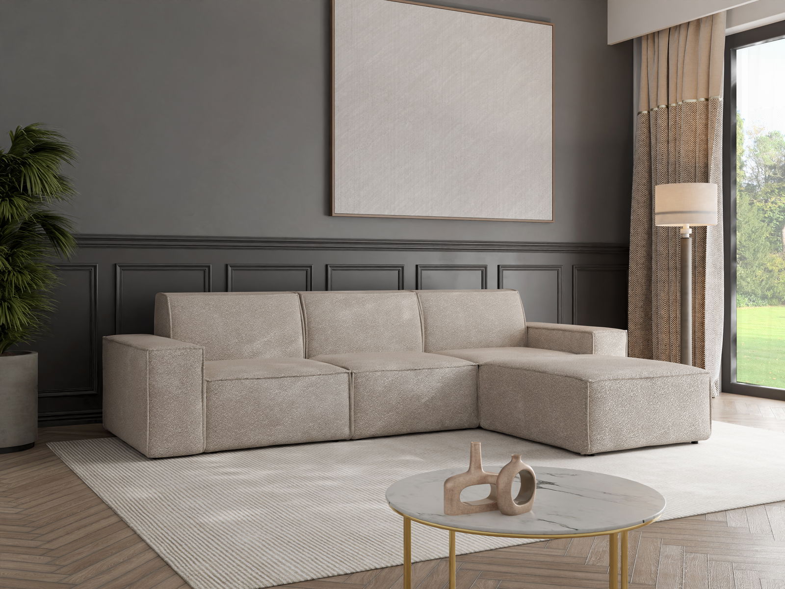 Rohová sedačka - Cuboid L (béžová) (P) je výnimočným produktom, ktorý vám umožní vytvoriť si ideálny sedací priestor presne podľa vašich predstáv. S exkluzívnou kolekciou Cuboid môžete jednoducho prispôsobiť svoje sedenie podľa potreby. Modulárny systém vám umožňuje kombinovať rôzne časti podľa vašich preferencií, či už si želáte elegantnú rohovú zostavu, pohodlnú U-čkov