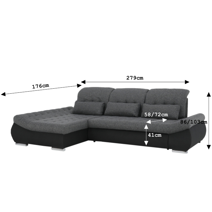 Elegantná celočalúnená sedačka s dekoračným prešívaním má polohovacie záhlavie pre ešte vyššie pohodlie. Sedačku je možné rozložiť čím získate plochu na spanie s rozmermi 129 x 210 cm. Súčasťou sú aj 3 dekoračné vankúše. Dostupná v ľavom aj pravom prevedení.