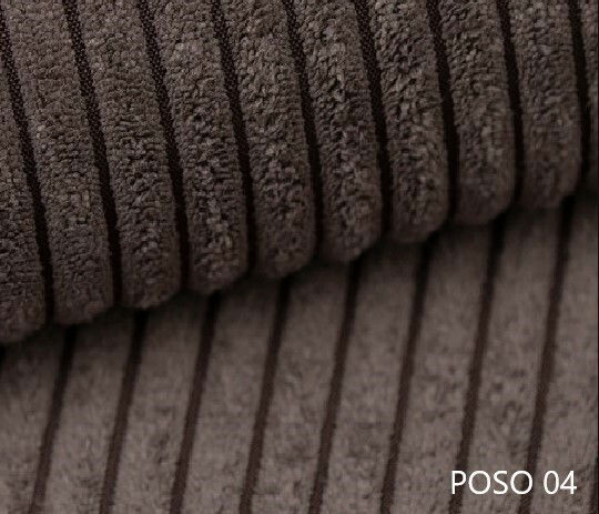 Tkanina Poso je čalúnnická látka so vzhľadom štruksu, vyrobená prevažne z polyesteru s prímesou nylonu. Je mäkká na dotyk, odolná voči oderu a svetlu, vhodná na sedačky, kreslá a vankúše. Čistí sa jemne – najlepšie vlhkou handričkou alebo špeciálnym prostriedkom na čalúnenie, nesmie sa prať v práčke, bieliť ani vystavovať priamemu slnku či silnému teplu.