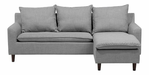 Táto rohová pohovka kombinuje klasický štýl s moderným vzhľadom. Vďaka obojstrannému dizajnu, ktorý umožňuje umiestnenie ležadla na ktorúkoľvek stranu, je skvelým miestom na oddych v obývacej izbe zariadenej v tradičnom alebo modernom štýle. Odolné čalúnenie v elegantnej farbe je doplnené štíhlymi nohami z kaučukového dreva, ktoré zabezpečujú stabilitu. Hrubá penová výplň sedadla a voľné operadlo, ktoré tvoria tri veľké vankúše, ocenia najmä tí, ktorí majú radi dokonalý komfort.