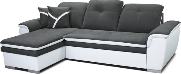 Táto rohová sedačka vás určite zaujme svojím originálnym dizajnom. Sedačka má tvarované opierky rúk a operadlové vankúše. Sedacia a operadlová časť sú prešívané. Sedačka je potiahnutá koženkou a aj šenilom. Užitočná je aj funkcia rozkladu a úložného priestoru. Ľavé prevedenie sedačky.