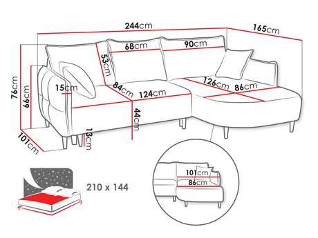 Elegantná, moderná voľba, ktorá vydrží dlho! Rozkladacia rohová sedačka Evorde je kvintesenciou štýlu! Navrhnutá s ohľadom na najnovšie dizajnové trendy a výnimočné pohodlie pri používaní. Vyznačuje sa moderným dizajnom. Dokonale zapadne do mnohých aranžmánov, od klasických až po moderné. Mäkké vankúše, ktoré slúžia ako opierka chrbta, poskytnú ešte väčší komfort pri odpočinku. Moderná rozkladacia rohová sedačka Evorde je maximálne praktická. Skvele sa bude hodiť ako posteľ pre hostí alebo pre nás samých v malých apartmánoch či štúdiách.