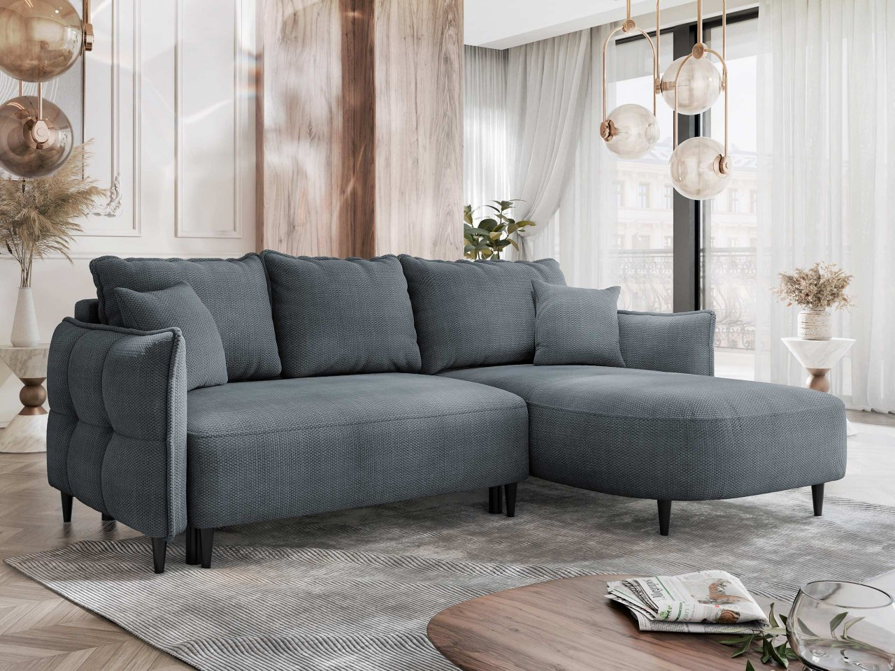 Elegantná, moderná voľba, ktorá vydrží dlho! Rozkladacia rohová sedačka Evorde je kvintesenciou štýlu! Navrhnutá s ohľadom na najnovšie dizajnové trendy a výnimočné pohodlie pri používaní. Vyznačuje sa moderným dizajnom. Dokonale zapadne do mnohých aranžmánov, od klasických až po moderné. Mäkké vankúše, ktoré slúžia ako opierka chrbta, poskytnú ešte väčší komfort pri odpočinku. Moderná rozkladacia rohová sedačka Evorde je maximálne praktická. Skvele sa bude hodiť ako posteľ pre hostí alebo pre nás samých v malých apartmánoch či štúdiách.