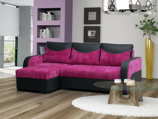 Rohová sedačka Famo (cyklaménová + čierna) (L)