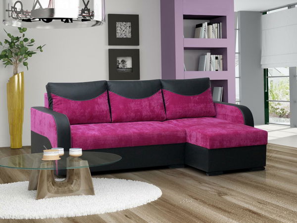 Rohová sedačka Famo (cyklaménová + čierna) (P)