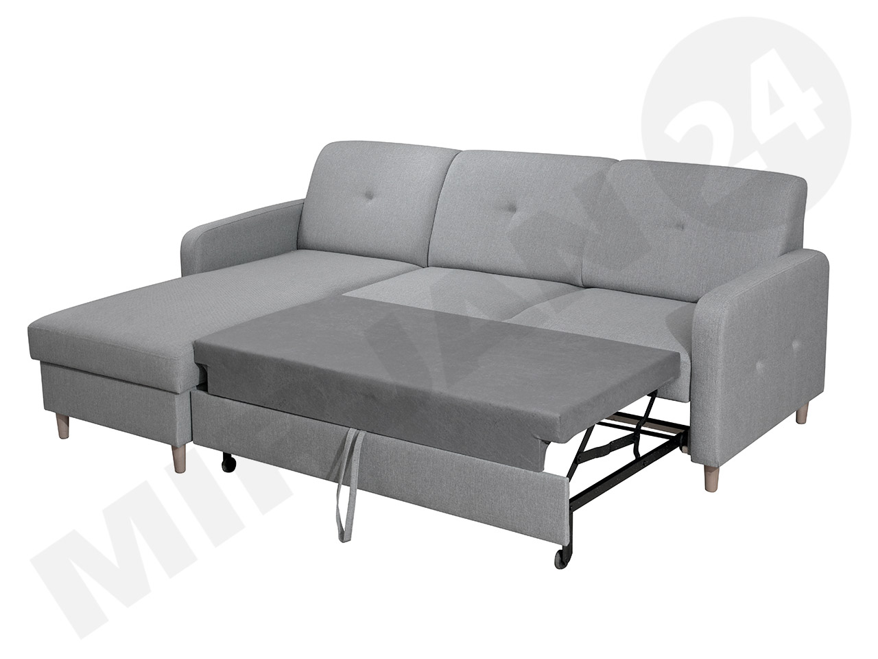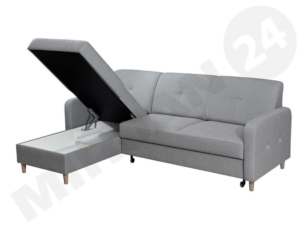 Rohová sedačka s nohami Fardeko je elegantný model, ideálny do malej obývačky. Štýl je daný drevenými nohami a jemným prešívaním po stranách nábytku a jeho chrbte. Rohová sedačka Fardeko má funkciu na spanie, čo je veľmi užitočné, keď nemáme pre hostí samostatnú izbu. Pri rozložení je plocha spania 200 cm x 125 cm. Sedačka má úložný priestor na posteľnú bielizeň. Fardeko je voľne stojací model sedačky, ktorý uľahčuje jej usporiadanie v miestnosti. Sada obsahuje dva malé vankúše.