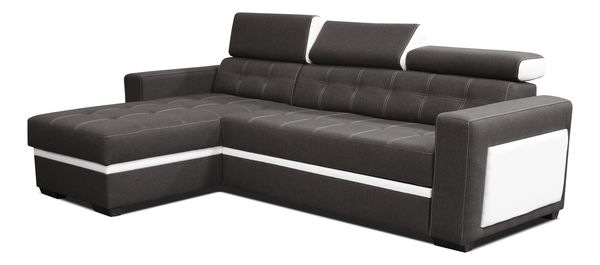 Pohodlie v obývacej izbe vytvoríte veľmi jednoducho s touto dizajnovo zaujímavou rohovou sedačkou. Sedacia časť a opierky chrbta sú výrazne prešívané. Pre väčšie pohodlie sa dajú horné časti opierok sklápať a nastavovať podľa potreby. Dizajnovým doplnkom sedačky je užší koženkový pás a koženkové časti na bokoch sedačky a opierkach. Sedacia časť je vyplnená pur penou a tvorená vlnitými pružinami. Sedačku možno rozložiť a získať tak praktickú plochu na príležitostné prespanie. Praktickou funkciou je aj úložný priestor. Ľavé prevedenie sedačky.