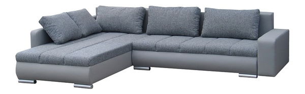 Rozmerná rohová dizajnová sedacia súprava navrhnutá s ceľom pôobiť luxusne a dominantne aby rozmernej miestnosti dodala príjemnú náladu. Sedačka je rozkladacia s úložným priestorom, po rozložení sa vytvorí rozmerná plocha na spanie o rozmere 266 cm dĺžka a 138 cm šírka. Sedák je vyrobený z pružiny, čím je zaručený komfort mäkkého sedenia a tvarová trvácnosť sedačky. V balení sa nachádzajú 3 veľké vankúše slúžiace ako operadlo a 2 menšie vankúše slúžiace ako operadlo na rohu sedačky. Sedačka stojí na kovových sivých nohách a je v prevedení ľavý roh. Farebná kombinácia je koženka Dolaro D-4 zemná sivá a šenil je Berlin 01 sivý.