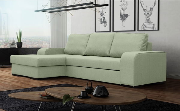 ZobraziťRohová sedačka Fonda v zelenom prevedení a veľkosti (L) s výškou 90 cm a hĺbkou 165 cm je ideálnou voľbou pre hosťovské izby aj obývacie miestnosti. Tento model sedačky je vyrobený s úložným priestorom a je možné ho objednať ako pravé alebo ľavé prevedenie. Tkanina sedačky je vyrobená z kvalitného materiálu - Portland 31, ktorý sa vyznačuje vysokou odolnosťou voči oteru. Konštrukcia sedačky je z drevených dosiek a dosiek laminovaných, pružinový systém je falistý. Výplň sedačky je z peny T-30 a nožičky sú v tmavom orechovom prevedení. Sedačka má rozmery 220 x 140 cm pre plochu na spanie a hĺbku sedu 52 cm a výšku sedu 44 cm. Rozkladací mechanizmus je na vozíku a sedačka má aj čalúnenie zozadu. Sedačka veľkosti (L) bola zabalená do dvoch balíkov s rozmormi 181x93x78 cm a 163x103x78 cm, každý balík váži 80 kg.