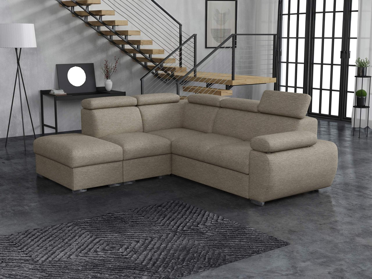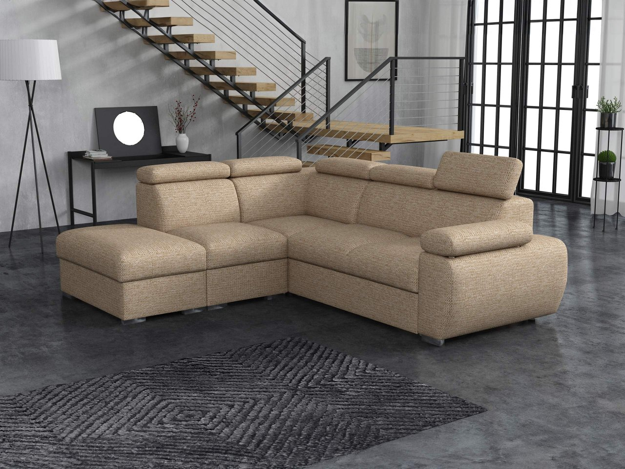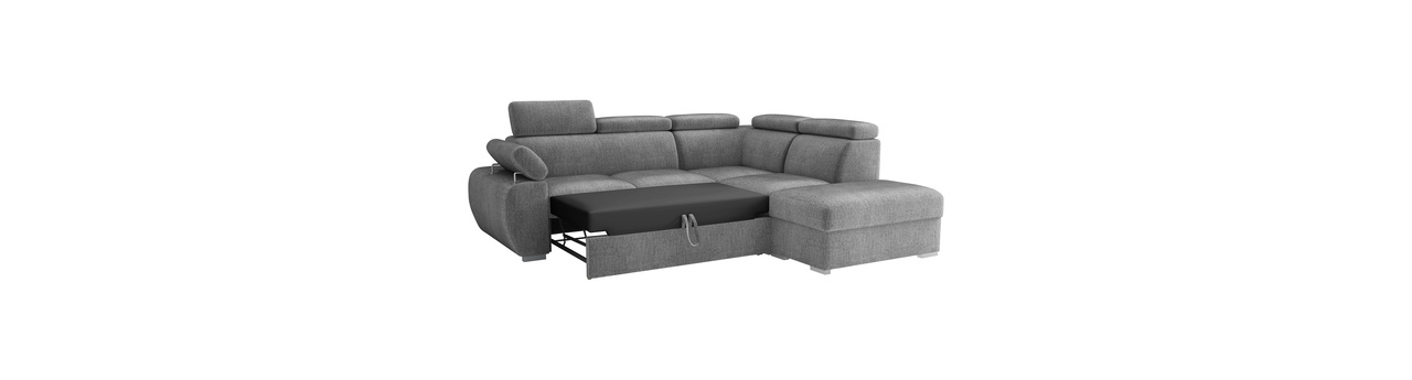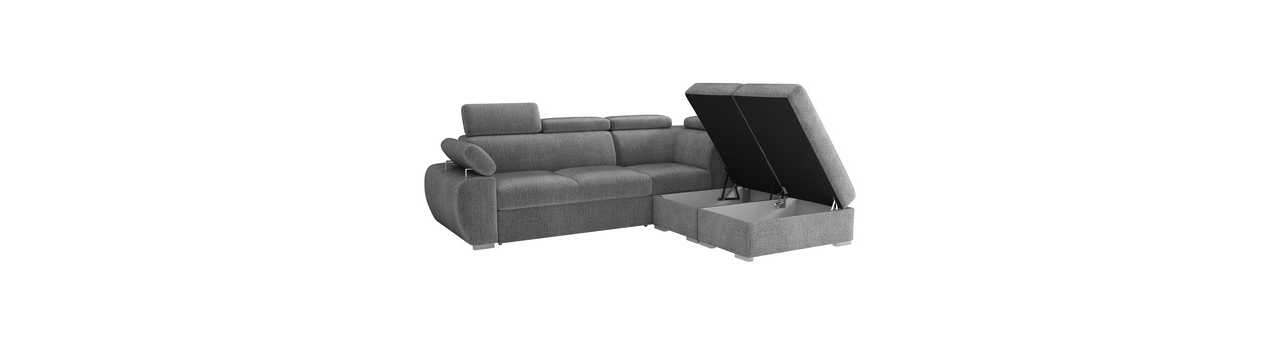 Rohová pohovka Gozo 2RR1P s dvoma úložnými priestormi je elegantná ponuka, ktorá poskytne neuveriteľný komfort a štýl každej obývačke. Model má mnoho výhod a funkcií. Je čalúnená príjemným čalúnením, ktoré zvyšuje komfort každodenného odpočinku. Ideálna na popoludňajší spánok a pri návšteve hostí. Pohodlný kútik na spanie je praktickou voľbou. Vďaka funkcii spánku sa skvele hodí aj do menších bytov, v noci poslúži ako posteľ. Pre väčšie salóny je to dobré riešenie na ďalšie prenocovanie pre hostí. To však nie je všetko, čo Gozo 2RR1P ponúka! Keď nahliadnete dovnútra, nájdete dve priestranné úložné priehradky na posteľnú bielizeň, prikrývky a vankúše. A ak by to nestačilo, variant je vybavený nastaviteľnými opierkami hlavy, ktoré zvyšujú komfort odpočinku.