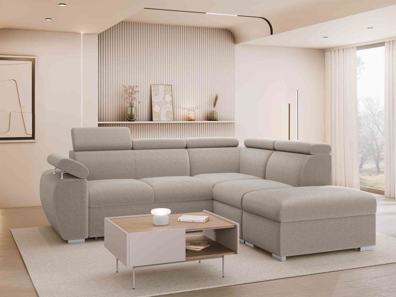 Rohová sedačka Gozo 2RR1P (béžová) (s úl. priestorom) (P)