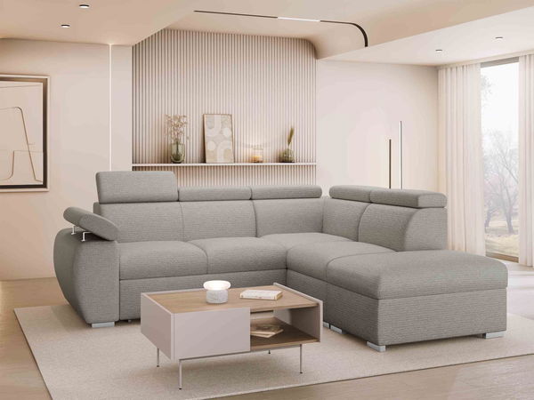 Rohová pohovka Gozo 2RR1P s dvoma úložnými priestormi je elegantná ponuka, ktorá poskytne neuveriteľný komfort a štýl každej obývačke. Model má mnoho výhod a funkcií. Je čalúnená príjemným čalúnením, ktoré zvyšuje komfort každodenného odpočinku. Ideálna na popoludňajší spánok a pri návšteve hostí. Pohodlný kútik na spanie je praktickou voľbou. Vďaka funkcii spánku sa skvele hodí aj do menších bytov, v noci poslúži ako posteľ. Pre väčšie salóny je to dobré riešenie na ďalšie prenocovanie pre hostí. To však nie je všetko, čo Gozo 2RR1P ponúka! Keď nahliadnete dovnútra, nájdete dve priestranné úložné priehradky na posteľnú bielizeň, prikrývky a vankúše. A ak by to nestačilo, variant je vybavený nastaviteľnými opierkami hlavy, ktoré zvyšujú komfort odpočinku.