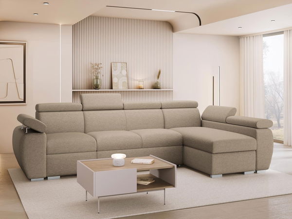 Rohová sedačka Gozo LCP do obývačky je moderný kus nábytku s elegantným dizajnom. Tlmené odtiene čalúnenia dodávajú interiéru sviežosť a nadčasový akcent, ktorý úspešne zapadne do aranžmánu, ktorý sa časom mení. Rohová sedačka s funkciou každodenného spánku sa skladá z niekoľkých segmentov vrátane časti s leňoškou umožňujúcou pohodlný relax. Má tiež nastaviteľné opierky hlavy, ktoré zvyšujú komfort používania, a široké, dobre polstrované podrúčky umožňujú pohodlné opretie rúk. Rohová sedačka je pomerne veľká, vhodná do priestranných obývačiek, kde sa môže stať centrálnym relaxačným bodom.