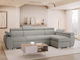 Rohová sedačka Gozo LCP do obývačky je moderný kus nábytku s elegantným dizajnom. Tlmené odtiene čalúnenia dodávajú interiéru sviežosť a nadčasový akcent, ktorý úspešne zapadne do aranžmánu, ktorý sa časom mení. Rohová sedačka s funkciou každodenného spánku sa skladá z niekoľkých segmentov vrátane časti s leňoškou umožňujúcou pohodlný relax. Má tiež nastaviteľné opierky hlavy, ktoré zvyšujú komfort používania, a široké, dobre polstrované podrúčky umožňujú pohodlné opretie rúk. Rohová sedačka je pomerne veľká, vhodná do priestranných obývačiek, kde sa môže stať centrálnym relaxačným bodom.