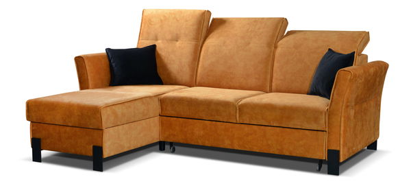 Rohová sedačka Granny (L) s výškou od 96 do 113 cm a hĺbkou 172 cm je ideálnou voľbou pre obývaciu miestnosť. Farba Terra 48 + Terra 99 dodáva sedačke výrazný charakter. Konštrukcia sedačky je vyrobená z nábytkovej dosky a masívneho dreva. Sedák je vyplnený vlnitou pružinou a penou. Sedačka sa jednoducho rozkladá pomocou vozíka a obsahuje aj úložný priestor. Výška sedu je 49 cm a hĺbka sedu 56 cm. Výška operadla je 38 cm a od sedadla sa dá nastaviť výška od 38 do 68 cm. S rozloženými opierkami hlavy dosahuje sedačka výšku 113 cm. Plocha spania má rozmer 126 x 200 cm. Nožičky sú vyrobené z kovu v čiernej farbe. Tkanina Terra má perfektnú odolnosť proti oderu - 90000-100000 cyklov odolnosti a obsahuje špeciálnu vrstvu na ochranu pred presakovaním tekutín. Tkanina je príjemná na dotyk a šetrná k zvieratám, čo uľahčuje odstraňovanie chlpov.