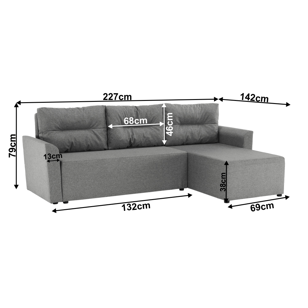 Nadčasová rohová sedačka Harmonie s možnosťou rozkladu, čím vznikne plocha na spanie pre návštevu. Disponuje úložným priestorom. Poťahová látka je oderuodolná, vďaka čomu si dlho udrží svoju peknú podobu. Sedačka je univerzálna, pri montáži môžete zvoliť stranu, ktorá sa najviac hodí do priestoru.