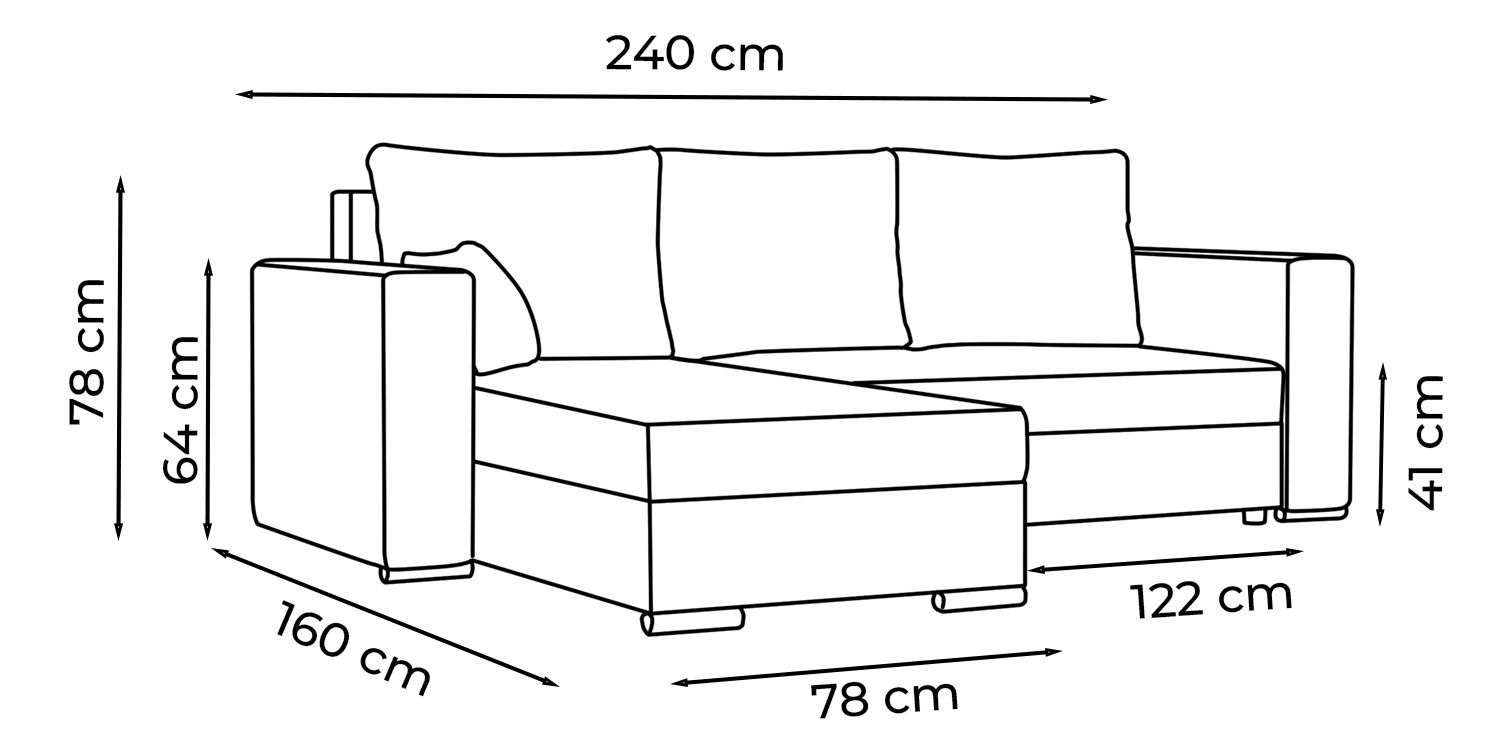 Táto rohová pohovka pre 3 osoby je navrhnutá s ohľadom na odolnosť a funkčnosť. Je určená na domáce použitie a je ideálna do obývacích izieb, pracovní a iných priestranných priestorov. Produkt sa môže pochváliť pevnou konštrukciou a vysoko kvalitnými materiálmi.
