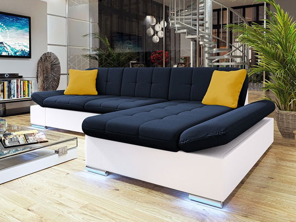 Rohová rozkladacia pohovka Jude LED je venovaná modernému usporiadaniu obývacej izby, ktorá je spoločným relaxačným priestorom pre všetkých členov domácnosti. Bohatá paleta farieb módnych poťahových látok vyhovuje vkusu aj tých najnáročnejších z nás. Pohodlie pri sedení zaisťuje elastická penová podšívka sedadla a podpery rohov. Vďaka vysokej kvalite komponentov je sedačka mimoriadne mäkká a pohodlná a dlhodobo si zachováva svoj pôvodný vzhľad. Nastaviteľné opierky hlavy vám navyše umožňujú upraviť optimálne nastavenie podľa vašej postavy. Jude LED je rohová sedačka s funkciou spánku. Vďaka optimálnej tvrdosti je nábytok skvelý ako náhrada za posteľ, ako aj ďalšie miesto na strávenie noci. V rozšírenej ležadle sa nachádza aj priestranný úložný priestor na posteľnú bielizeň. V spodnej časti nábytku sú chromované nohy, ktoré sú zdobené módnym LED osvetlením. Profil osvetlenia vyžaruje teplú farbu a RGB a pomocou priloženého diaľkového ovládania môžete bez námahy ovládať farbu svetla a prispôsobiť ho vašim preferenciám. Pre rohovú sedačku sú k dispozícii aj ozdobné rohové vankúše.