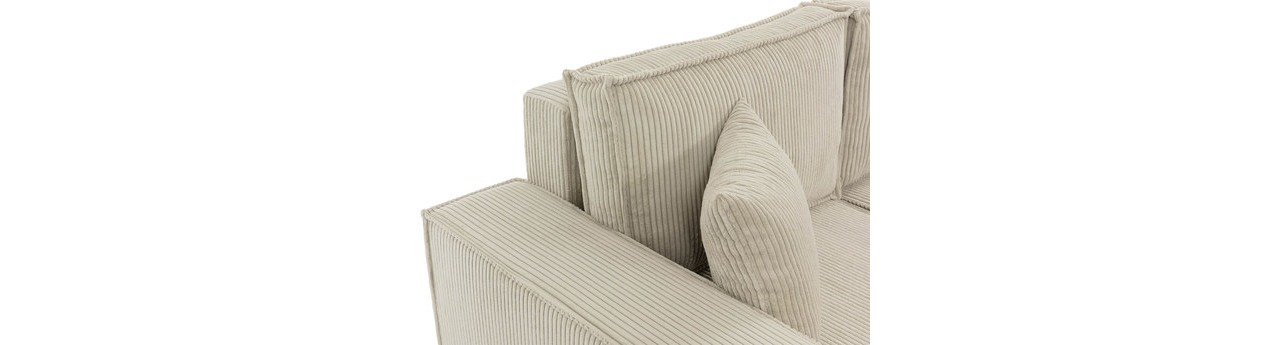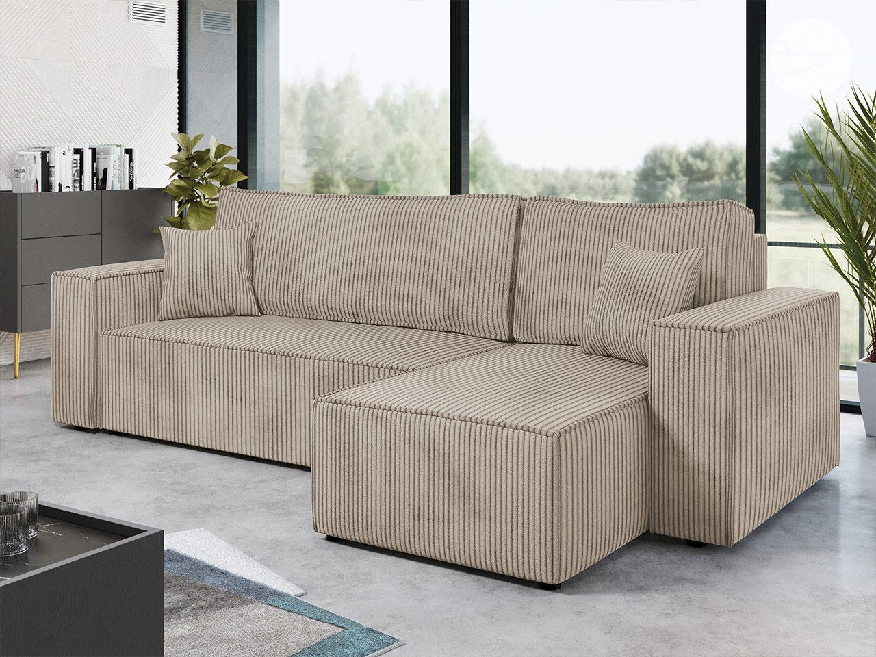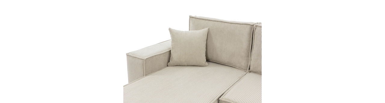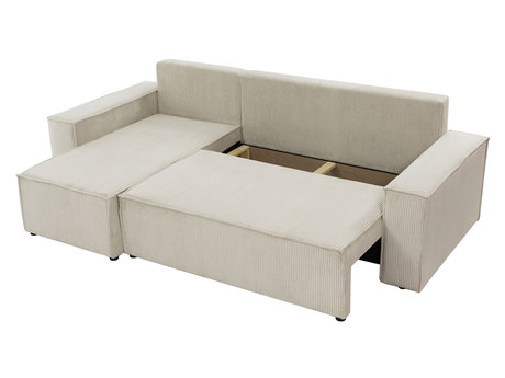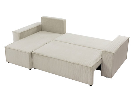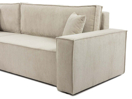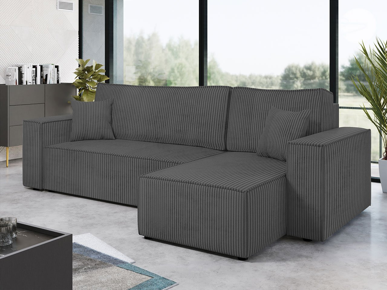 Rozkladacia sedačka Kasuna s funkciou spania je model s mimoriadnou funkčnosťou a jedinečným dizajnom. Jej jedinečnou vlastnosťou je, že sa dá rozložiť, čo z nej robí ideálne miesto na odpočinok a spánok. Poteší aj svojím spracovaním. Rebrovaná látka jej dodáva elegantný charakter a zaujímavý vzhľad.To však nie je všetko! Stačí len chvíľka, aby ste túto rohovú pohovku premenili na priestrannú posteľ, ktorá vám poskytne miesto na regeneračný spánok. Takto si môžete užívať pohodlie nielen počas každodenných chvíľ oddychu, ale aj počas dlhých a pohodových nocí. Tento variant bol vybavený úložným priestorom, ktorý vám umožní uložiť prikrývky, vankúše a ďalšie potrebné veci. Okrem toho bolo jeho operadlo navrhnuté vo forme pohyblivých vankúšov, ktoré si môžete ľubovoľne nastaviť podľa svojich preferencií. Sedačka je nielen funkčná, ale aj krásny dekoratívny prvok, ktorý vnesie do vášho interiéru moderný a štýlový nádych. Jej voľne stojaca konštrukcia vám umožní ľubovoľne ju umiestniť kdekoľvek v miestnosti, čím získate úplnú voľnosť pri jej usporiadaní.