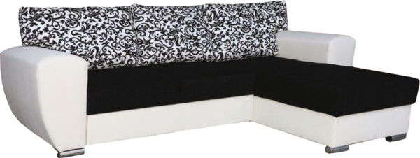 Zaujímavá rohová rozkladacia sedačka, ktorá je dodávaná v čierno-bielej farebnej kombinácií. Ako sedenie slúži pružina typu vlnovka v spolupráci s odolným molitanom. Rozkladanie je typ automat a drobné široké nožičky sú výraznej sivej farby.