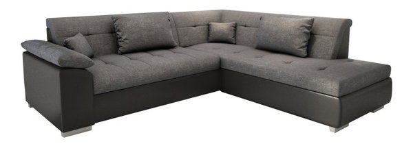 Celočalúnená sedacia súprava Leander (P). So šírkou 250 cm sa ideálne hodí do priestranného interiéru. Vyrobená je z kvalitných materiálov. Čierna ekokoža a svetlosivá látka sa dokonale dopĺňajú. Súčasťou sedacej súpravy sú aj 4 dekoratívne vankúše, ktoré zároveň plnia funkciu opierok. Moderný look dodáva sedačke aj dekoratívne prešitie sedacej časti aj štýlové nožičky. Sedačka je rozkladacia, rozložením získate dostatočnú plochu na spanie s rozmerom 132 x 195 cm.
