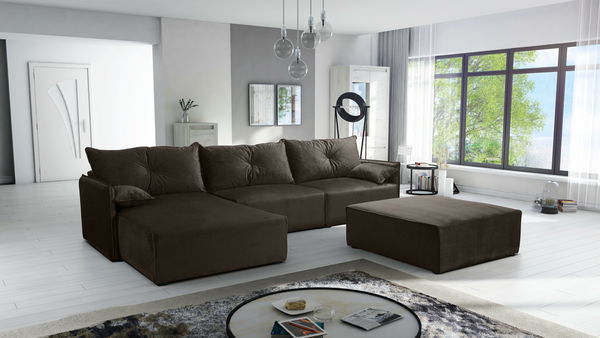 Rohová sedačka Leonaro 2 (hnedočierna) (L) s výškou 85 cm a hĺbkou 179 cm je multifunkčným a štýlovým kusom nábytku, ktorý perfektne zapadá do každého interiéru. Kombinácia klasického dizajnu s modernými povrchovými úpravami a čalúnením dodáva sedačke jedinečný charakter. Vyrobená z vysokoelastickej peny T2844 a vlnitých pružín, zaisťuje mimoriadnu mäkkosť a pružnosť, a tým aj primeranú oporu a stabilizáciu tela počas odpočinku. Sedačka poskytuje aj miesto na nočný odpočinok s možnosťou uloženia posteľnej bielizne. Súprava obsahuje 3 veľké a 2 malé dekoračné vankúšiky a taburetku v cene. Rohová sedačka Leonaro 2 je dostupná v širokej škále farieb a má konštrukciu z drevotriesky (16 mm) a drevenej lišty v rozmere 5 x 2,5 cm. Plocha spania je 110x298 cm, hĺbka sedenia bez vankúšov 81/160 cm, s vankúšmi 56/135 cm, výška sedenia 38 cm, výška opierok rúk 60 cm, šírka opierok rúk 10 cm. Sedačka má úložný priestor a možnosť rozkladu. Tkanina Royal je velúrová s krátkym vlasom a vysokou odolnosťou voči svetlu a zachováva si pôvodnú farbu pri dennom svetle. Sedačka má test oderuvzdornosti Martindale 30 000 cyklov. Sedačka sa dodáva v 5 balíkoch, z ktorých taburetka je v cene a je možné ju objednať aj bez nej.