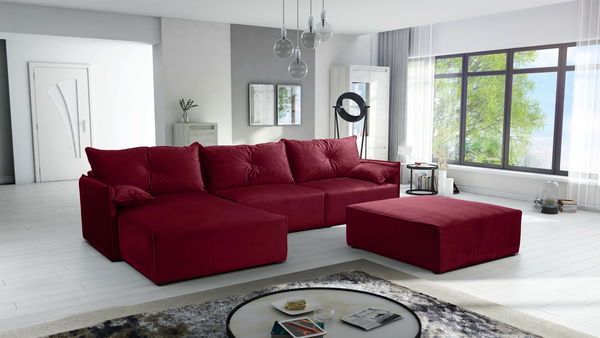 Rohová sedačka Leonaro 2 (tmavočervená) (L) s výškou 85 cm a hĺbkou 179 cm z kolekcie Royal 15 je štýlový a funkčný nábytok, ktorý sa perfektne hodí do každého interiéru. Táto rohová sedačka je vyrobená z vysokoelastickej peny T2844 a vlnitých pružín, čo ju robí mimoriadne mäkkou a zároveň pružnou, poskytuje primeranú oporu a stabilizáciu tela počas odpočinku. Sedačka Leonaro 2 navyše poslúži aj ako miesto na nočný odpočinok, pretože je vybavená dvoma priestrannými miestami na posteľnú bielizeň a obsahuje aj 3 veľké a 2 malé dekoračné vankúšiky + taburetka v cene. V súprave je teda všetko, čo potrebujete na dokonalý oddych. Konštrukcia sedačky je z drevených lišt a drevotriesky, výplňou je polyuretánová pena s hustotou 28 kg/m³ a falisté pružiny. Plocha spania je 110x298 cm, hĺbka sedenia bez vankúšov je 81/160 cm a s vankúšmi 56/135 cm, výška sedenia je 38 cm, výška opierok rúk 60 cm a šírka opierok rúk 10 cm. Sedačka má úložný priestor, možnosť rozkladu, výšku nožičiek 1,5 cm a nosnosť 300 kg. Tkanina sedačky Royal je velúrová, s krátkym vlasom, ktorá sa vyznačuje zamatovo jemným povrchom a vysokou odolnosťou voči svetlu. Na údržbu a čistenie používajte špeciálne prostriedky pre čalúnený nábytok. Sedačka Leonaro 2 je rozložená na päť balíkov, z ktorých jeden obsahuje taburetku.
