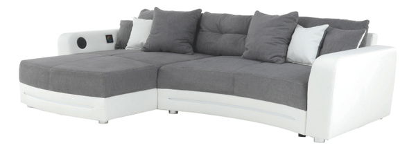Unikátna luxusná rohová sedacia súprava Luxlaredo je určená všetkým, ktorí túžia po netradičných a ojedinelých interiérových doplnkoch. Sedacia súprava je podsvietená a má zabudované elektronické doplnky - reproduktory, bluetooth, MP3 prehrávač, dotykové ovládanie, funkciu USB nabíjania. Je vyrobená z bielej ekokože s kvalitným látkovým poťahom sivej farby. Je univerzálna a môžete si ju umiestniť do pravého alebo ľavého rohu miestnosti.