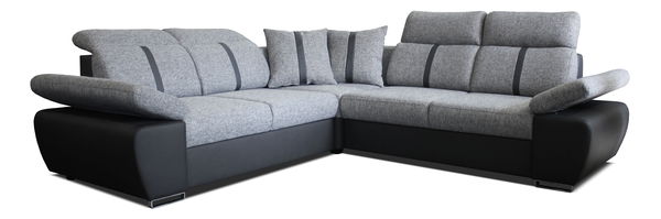 Unikátna rohová sedačka, ktorá dodá vašej obývacej izbe vkus a eleganciu. Zaručí vám dostatočné pohodlie a oceníte jej praktické funkcie. Sedacia časť je vyplnená pur penou a vlnitými pružinami. Sedačka je potiahnutá koženkou a šenilom. Podrúčky a opierky hlavy sú polohovateľné podľa potreby. Ak poterbujete priestor na prespanie, sedačku jednoducho rozložíte. Výhodou je aj úložný priestor, do ktorého si viete uložiť posteľnú bielizeň a ďalšie doplnky. Ľavé prevedenie sedačky.